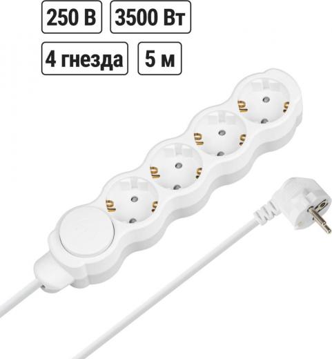TDM Electric Удлинитель бытовой Люкс с выкл., 4 гнезда, 5 м, с/з, с з/ш, ПВС 3х1 мм2, 16 А, 250 В, 3500 Вт У1-43059, цена за 1 шт