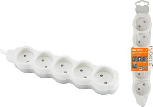 TDM Electric Удлинитель бытовой Люкс УЛ5 5 гнезд, 5м, б/з, с з/ш, ПВС 2х0,75 мм2 10А/250В бело-серый, цена за 1 шт