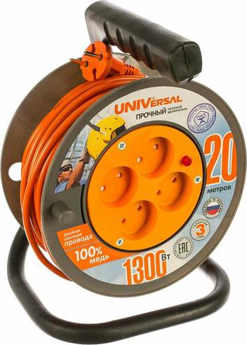 Универсал Катуш. Пвс 2Х0.75 4 Роз. 20 М 6А Шторки, Термо, Литая Вилка У6-014 2057